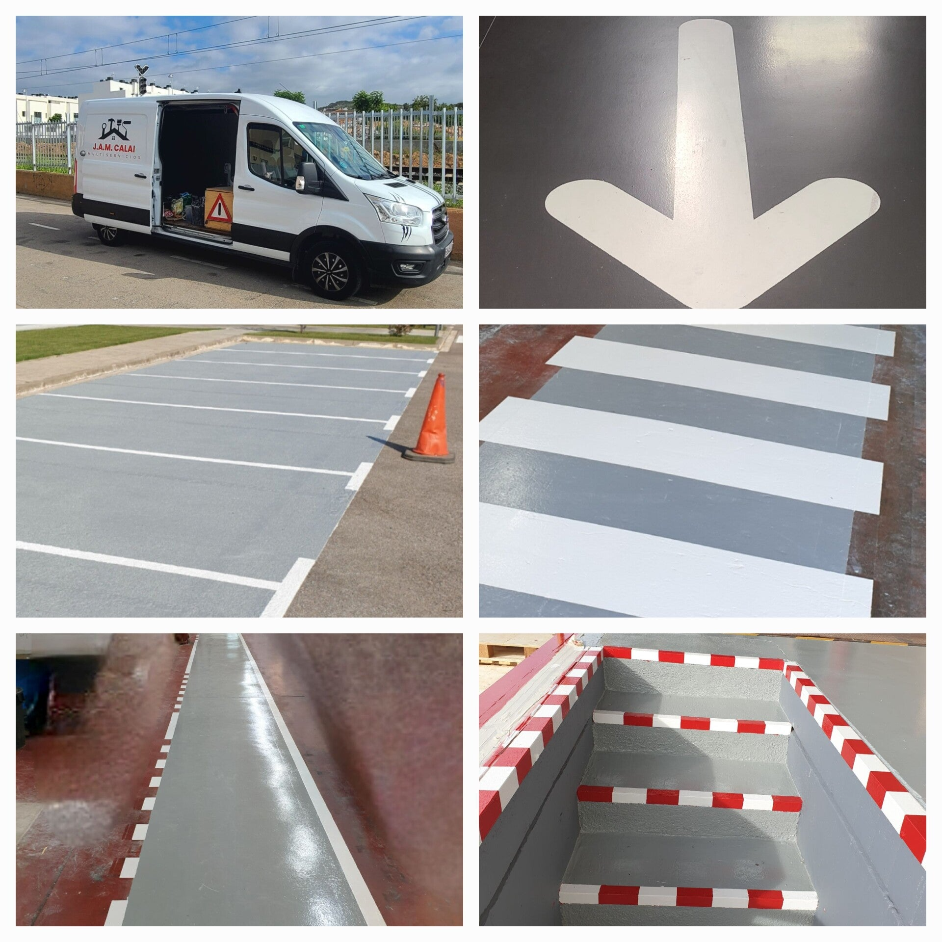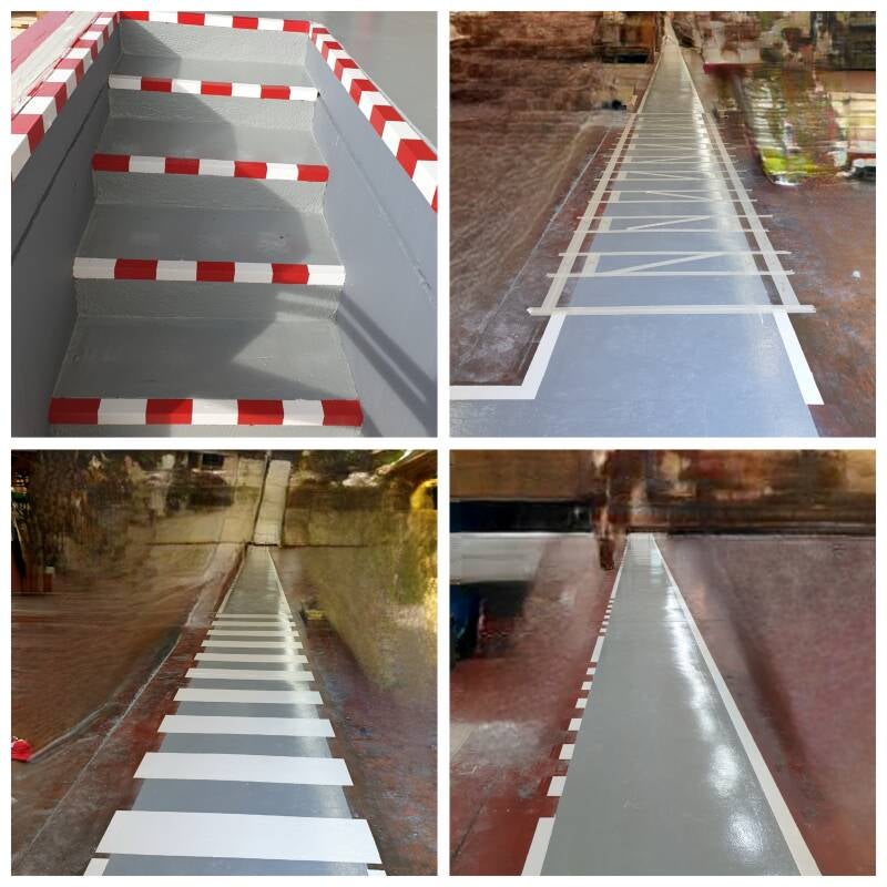 -Pasillos peatonales en pintura epoxi o poliuretano (varios colores disponibles ) antideslizante para zonas que lo requieren